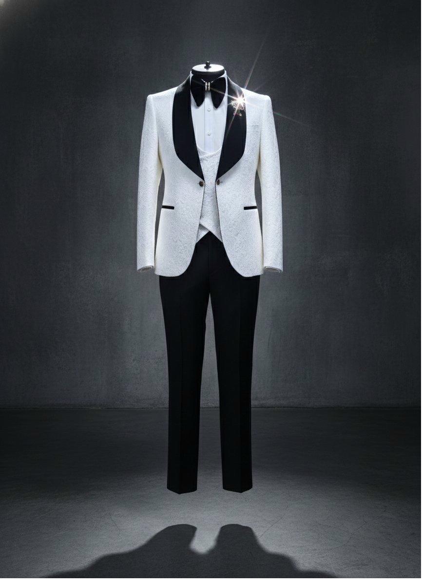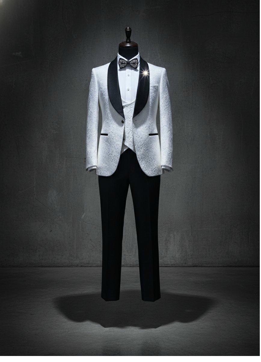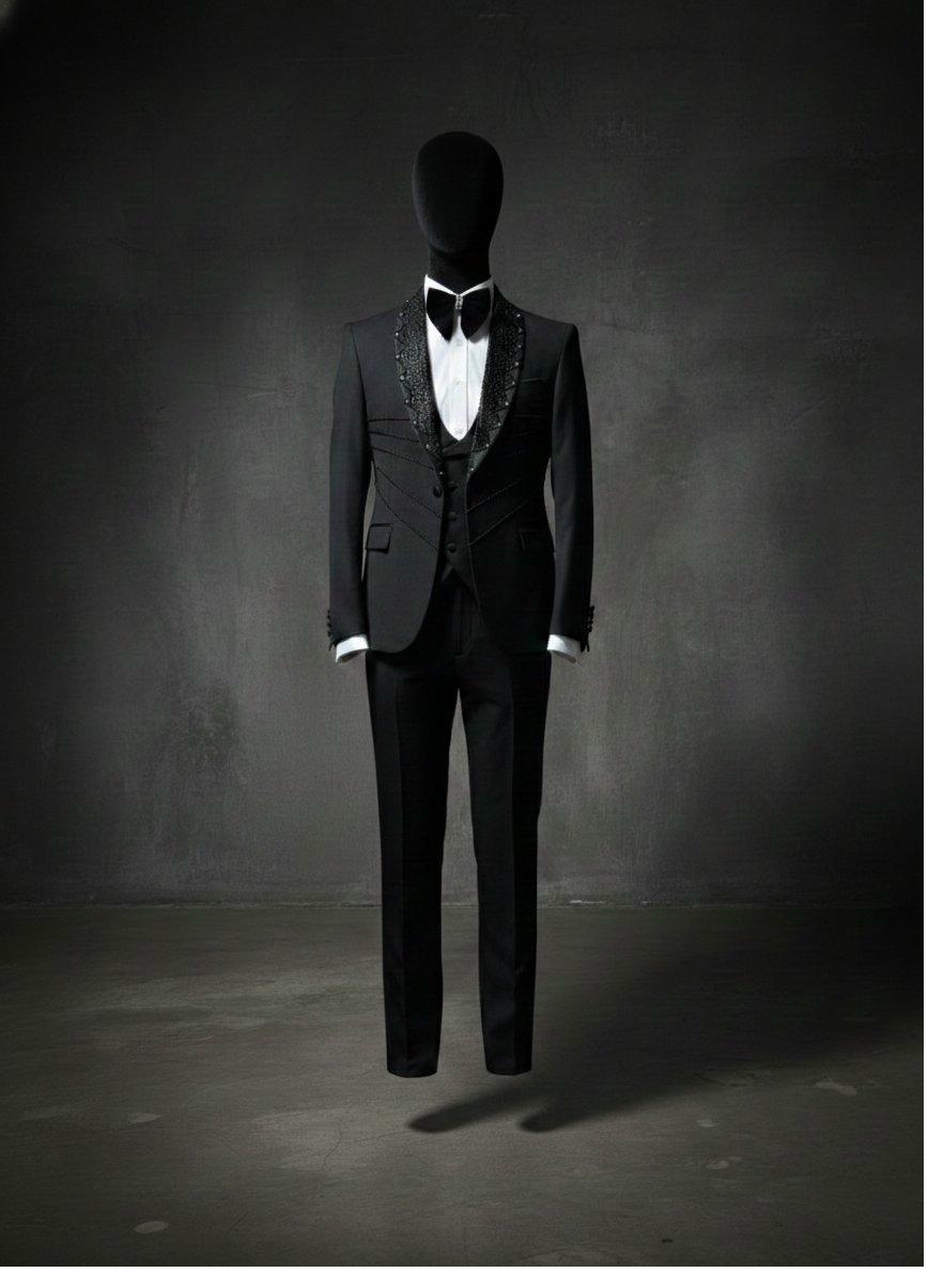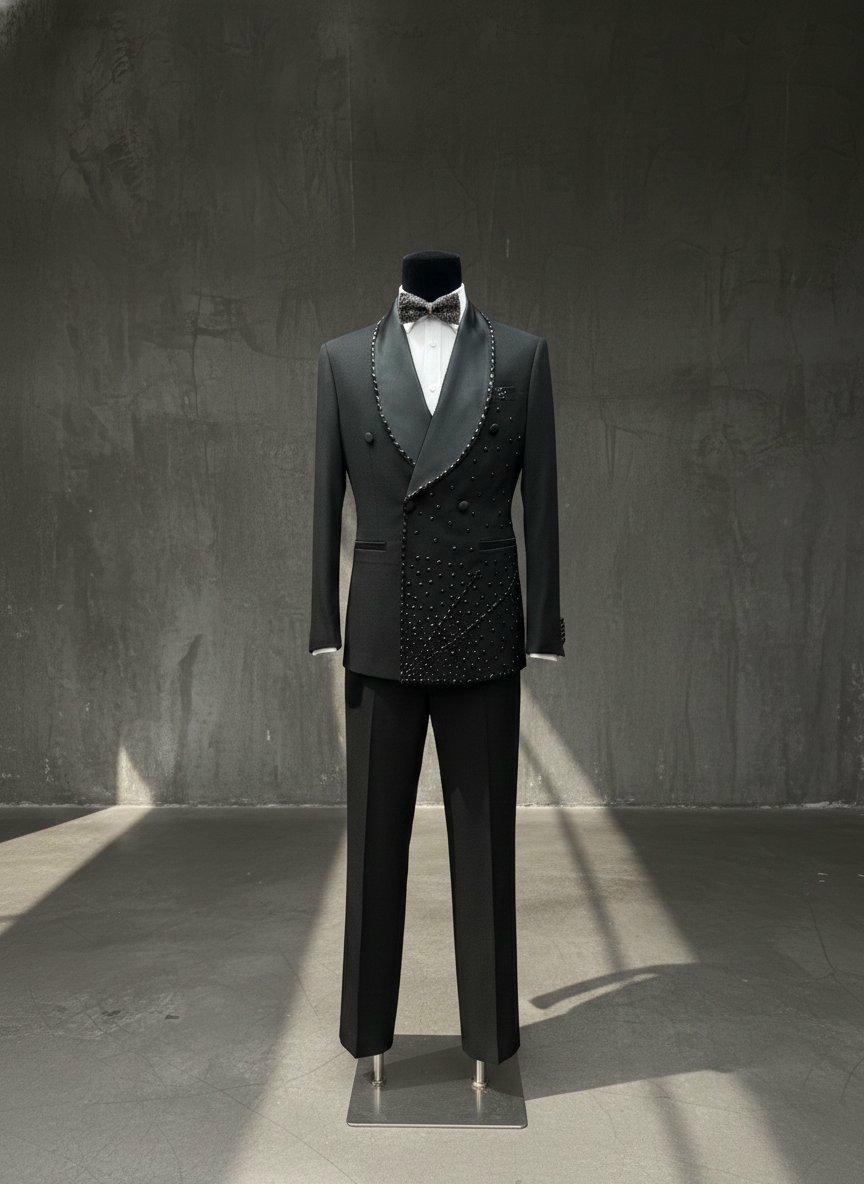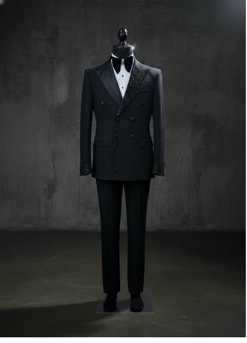 The Foundation is where every dynasty starts. Pure tailoring, pure fabric quality, pure confidence — no crystal needed. At $500, these tuxedos end the rental conversation before it begins. Every suit is commissioned to his exact measurements, delivered in two weeks, and owned forever.